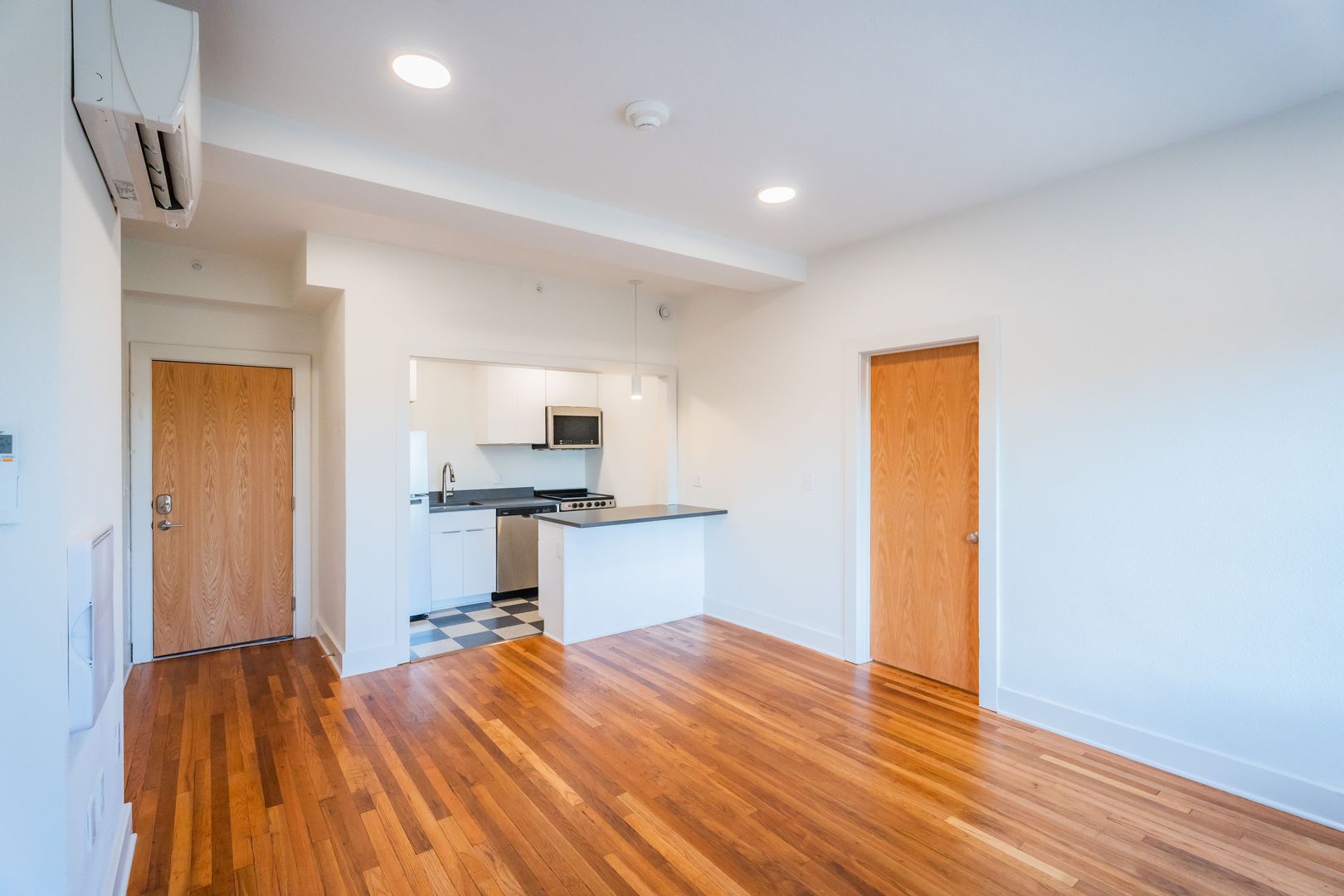 The Cranford apartments feature studios, one-bedroom, and one-plus-bedroom units. Modern sleek finishes meet vintage beauty. Quartz countertops, original hardwood floors, mosaic tile bathroom flooring, large windows, central air conditioning, free laundry facilities, and much more! New community features include a fitness center, updated courtyard with greenspace, and elevator.