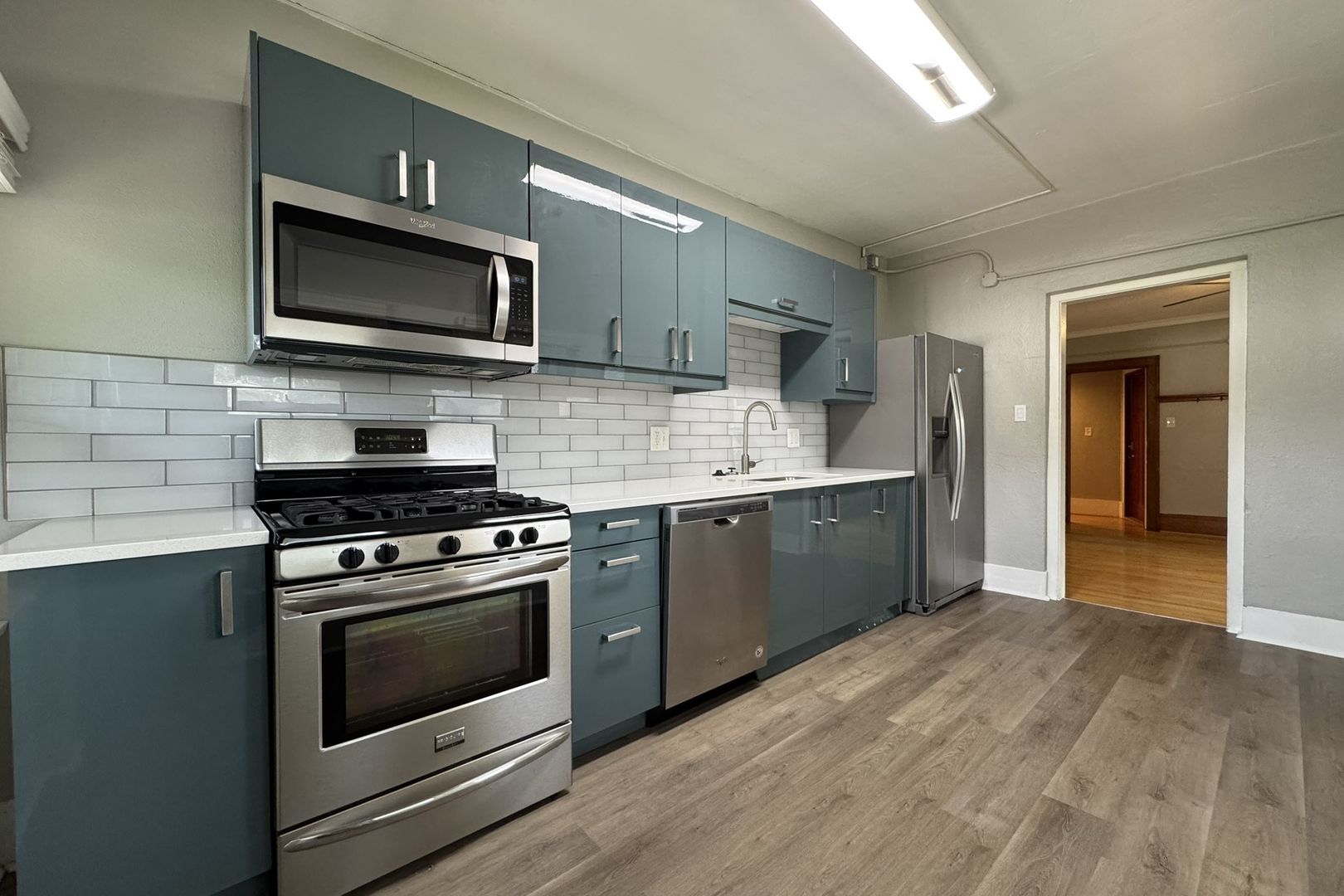This two-bedroom unit includes 2 parking spaces, free internet, most utilities included, window air, is close to campus, and is pet-friendly. The entire unit was recently remodeled with a twist of classic construction and sleek modern touches.